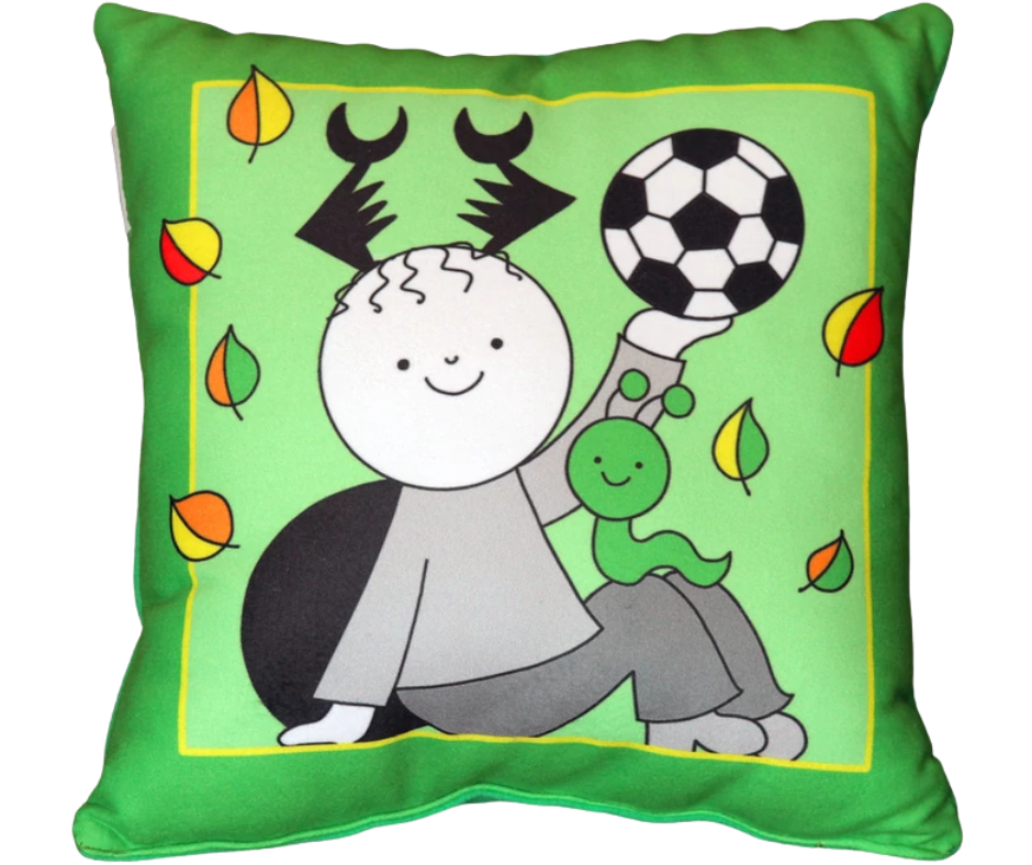Párna a Bogyó és Babóca sorozat szereplőivel. Vendel, a szarvasbogár grafikáját a sorozat szerzője készítette.