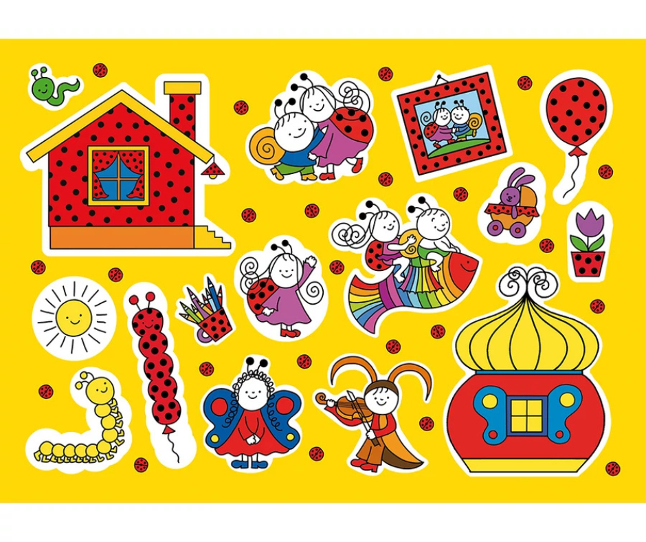 Kapható a nyolc különböző Bogyó és Babóca matrica! A piros, sárga, zöld, lila, rózsaszín, narancssárga, világoskék és sötétkék matricaíveken különböző rajzokat, különböző szereplőket vagy házakat láthatunk. A matrica tasakjában levő lap mindkét oldala kifestőt rejt a legkisebbek számára.