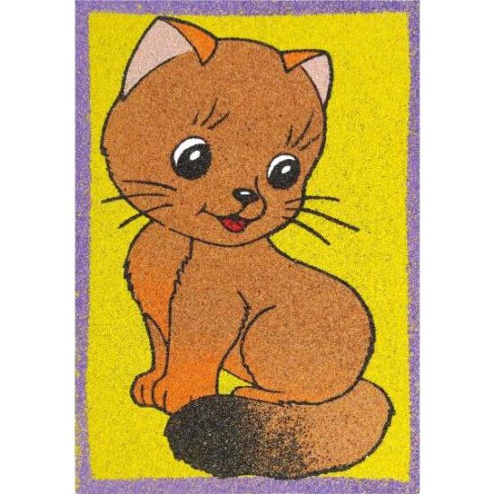 A csomag tartalmaz 1 sablonképet és 6 tasak homokot a következő színekben: