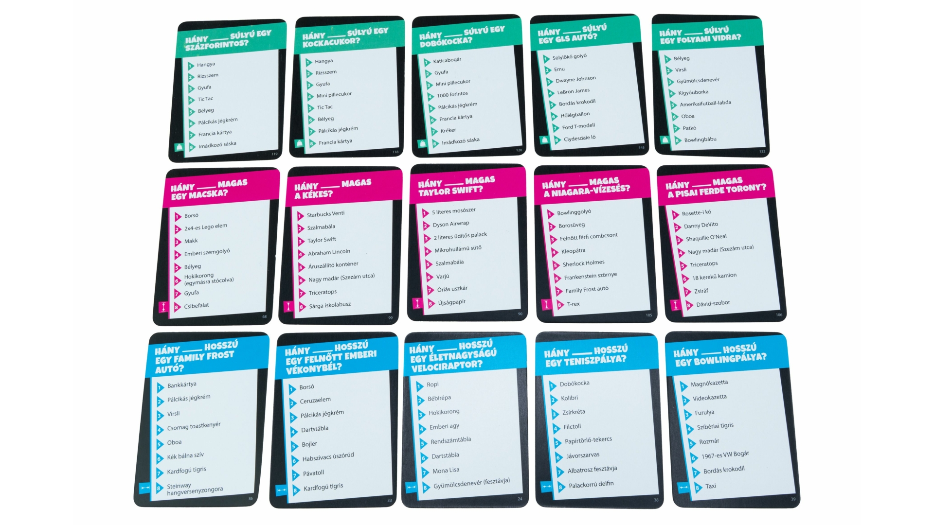 A Mennyi az annyi? gyors, vicces és teljesen eszement játék, ami feldobja a baráti összejöveteleket, családi estéket és bulikat egyaránt. Mert valljuk be: ki ne akarná tudni, hány focilabda magas egy zsiráf?