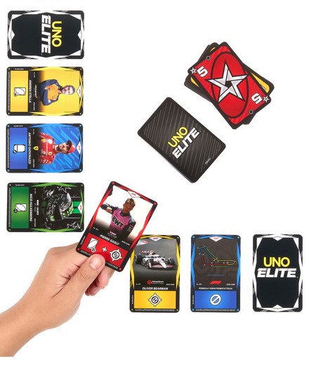 Az UNO Elite F1 az a játék, ami padlógázon pörgeti a rajongókban a versenyszellemet! A világ egyik legnépszerűbb kártyajátéka ebben a változatban is olyan egyszerű, amilyen nagyszerű. Különlegessége, hogy a különböző műveletek, mint a kimaradás és az irányváltás, az Elite akciókártyákon szerepelnek. A kártyákon minden idei csapat és pilóta szerepel, és ha szerencsénk van, akkor az összes kedvencünk megtalálható a pakliban. A játék célja, hogy megszabadulj a kezedben lévő lapoktól. Ehhez figyelni kell, milyen színű és számú kártya van a dobópakli tetején, hiszen csak ahhoz illeszkedőt tehetsz le. A játékot a különleges akciókártyák és a speciális F1 szabályok teszik igazán izgalmassá. Persze a legfontosabb szabály a végén van: Ha már látod a kockás zászlót és csak egy kártya van a kezedben, ne felejtsd el azt kiáltani: győztem!... illetve UNO! Az UNO Elite F1 csomag 112 kártyát, 2 exkluzív fóliakártyát és 4 db, egyenként 10-10 fóliakártyából álló kiegészítő csomagot tartalmaz. Szuper ajándék 7 éves kortól. A színek és díszítések eltérhetnek. A termék jellemzői: